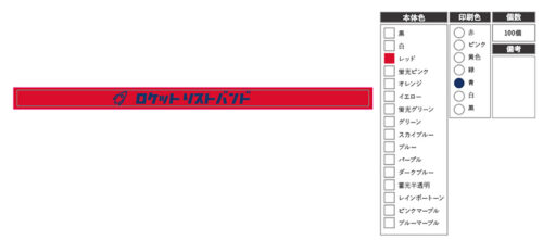 超速リストバンドは本体16色×印刷7色から選択するワンサイズの商品